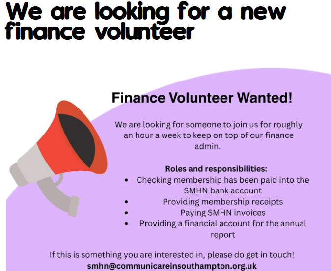 We are looking for a new finance volunteer!