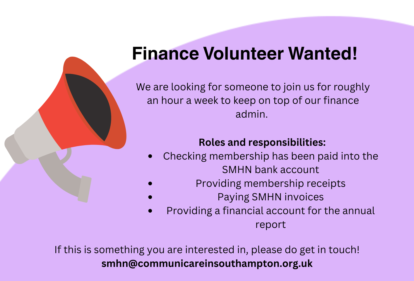 We are looking for a new finance volunteer