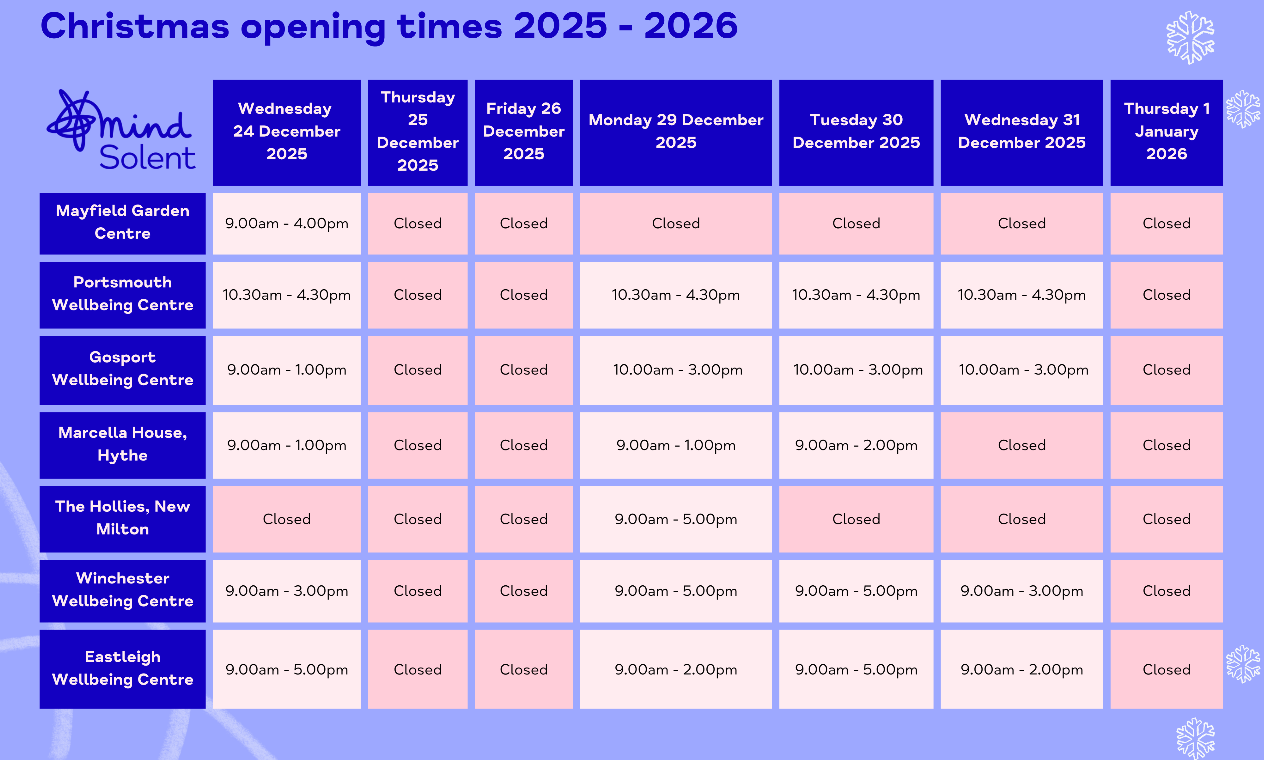 Solent Mind Christmas Opening Hours